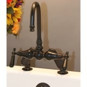 This deck mounted Gooseneck Faucet features an elegant design, and variable center from 3" to 8" for easy adjustment. Available in your choice of finish.